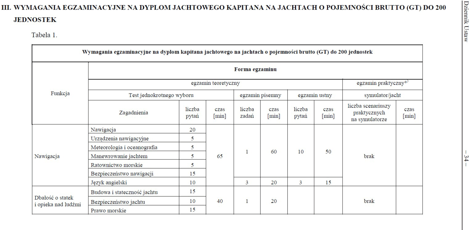 Aby móc zdobyć dyplom jachtowego kapitana na jachtach o pojemności brutto (GT) do 200 jednostek musisz posiadać udokumentowany staż wynoszący 6 miesięcy praktyki pływania na jachtach komercyjnych (po uzyskaniu patentu kapitańskiego PZŻ lub PZMiNW).